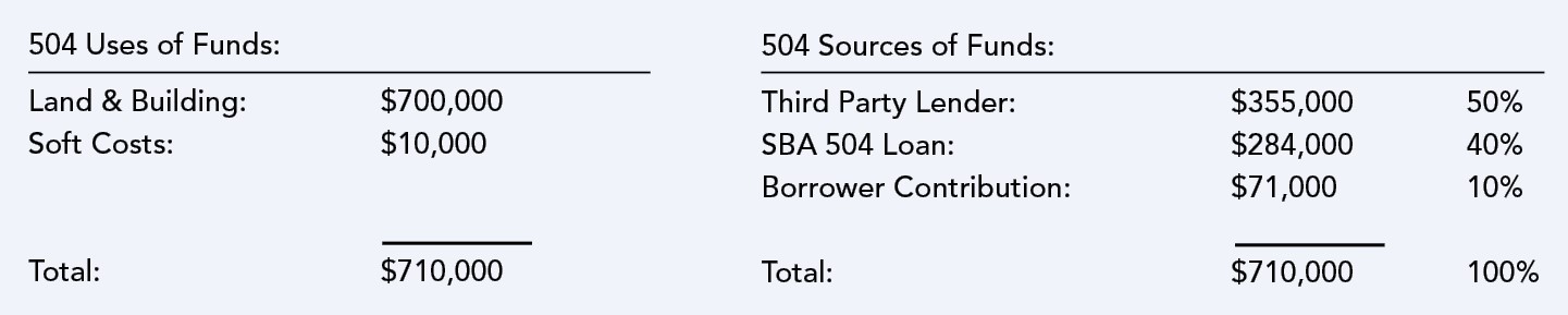 Here is an Example illustrating a combination of the 504 & 7(a) programs: